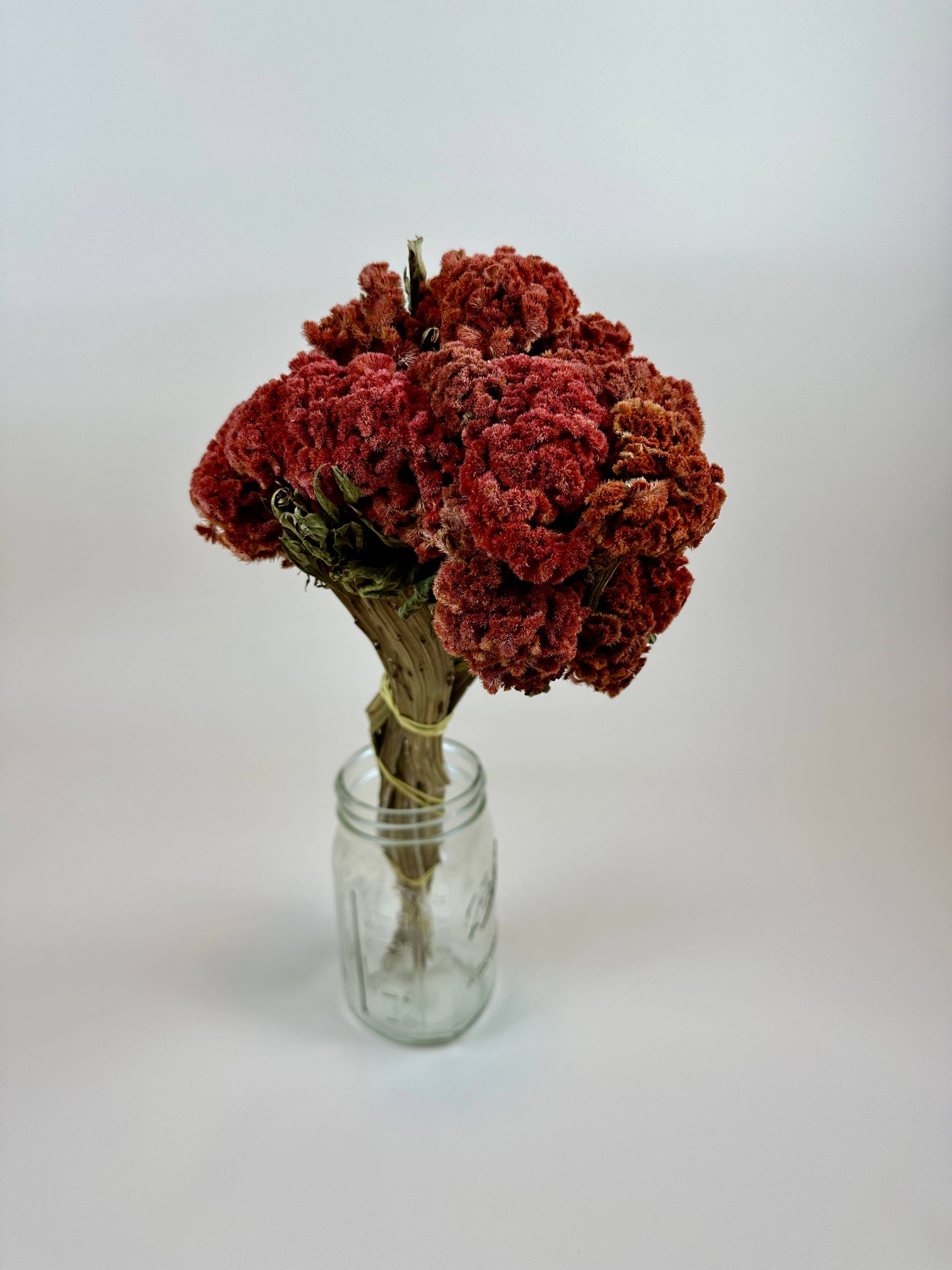 The Autumn Coxcomb (Celosia) stems are a beautiful creation of nature. The flower is a full head of vibrant and velvety petals. These plants are often referred to as Coxcomb, Wool Flowers, or Brain Celosia. The stems are strong and thick and have been defoliated. This item is dried using ambient air with no added preservatives or coloring. The shape of the heads vary dramatically but will add a focal point to any design. This item will retain the same color, appearance, and integrity dried as when fresh for several years particularly when displayed out of direct sunlight. This item is not promoted to be used for human or animal consumption.